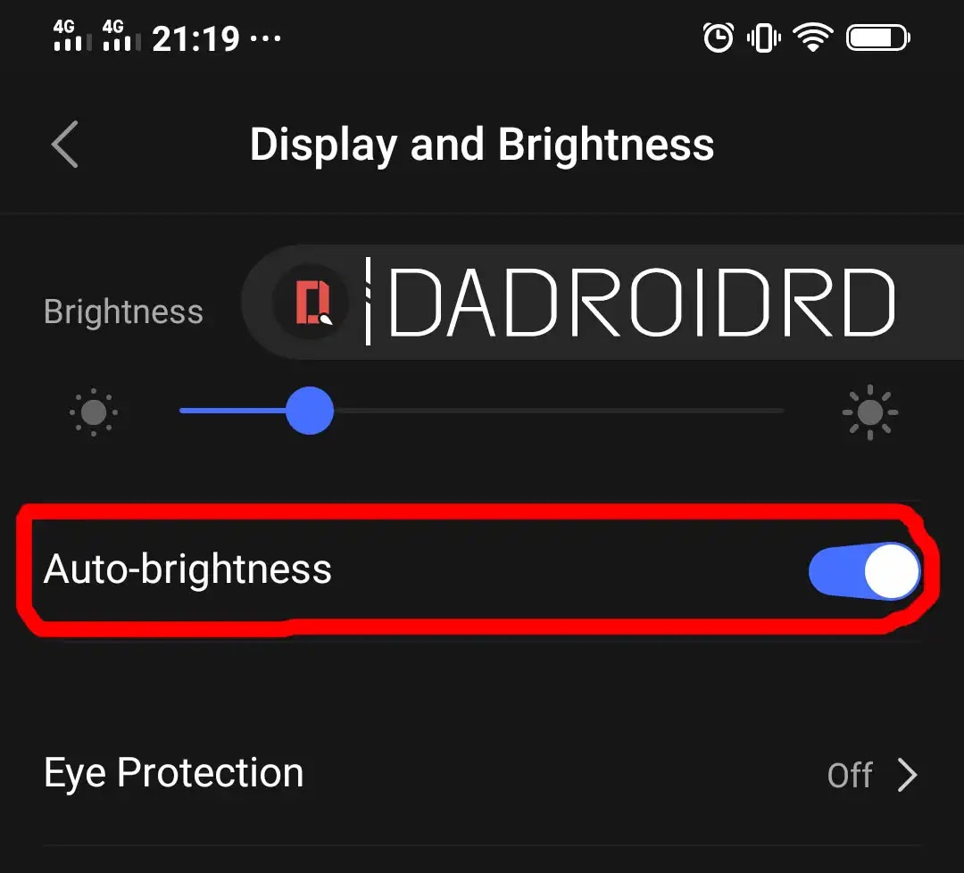 Silahkan lihat pada hidangan Auto Brightness atau Kecerahan Layar Otomatis, silahkan aktifkan menyerupai ini :